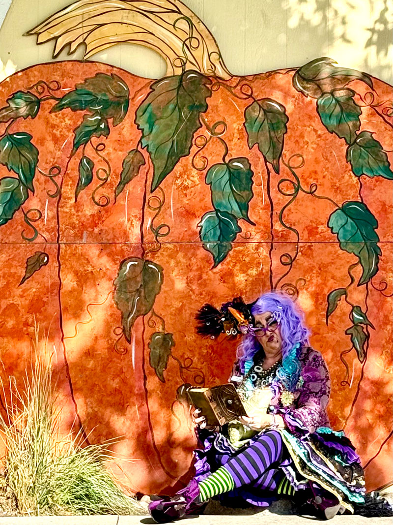 If your witch crowd is sizeable, this is the spot to stop. You’ll find the oversized pumpkin outside of Happy Camper Deli & Bakery. Get your best punk’n grins ready!