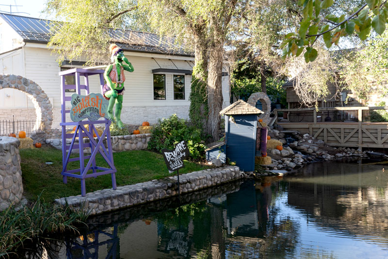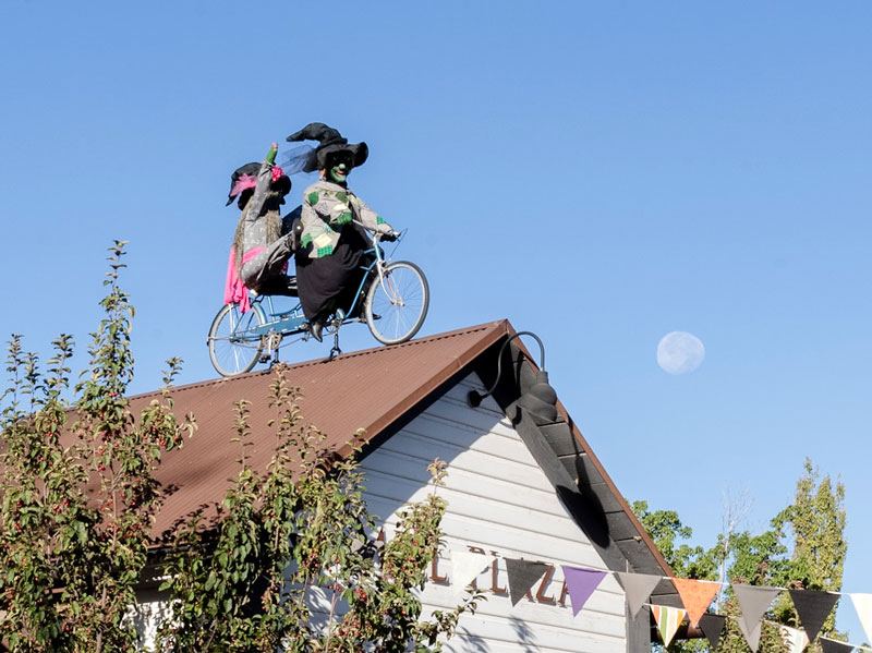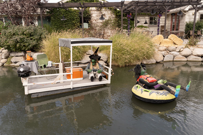 Sometimes we want to keep the displays focused on traditional witch things – cauldrons, bats, moss, etc. Sometimes we like to do what people do – pickleball, painting, fishing, etc. There’s a balance of the traditional and the everyday.