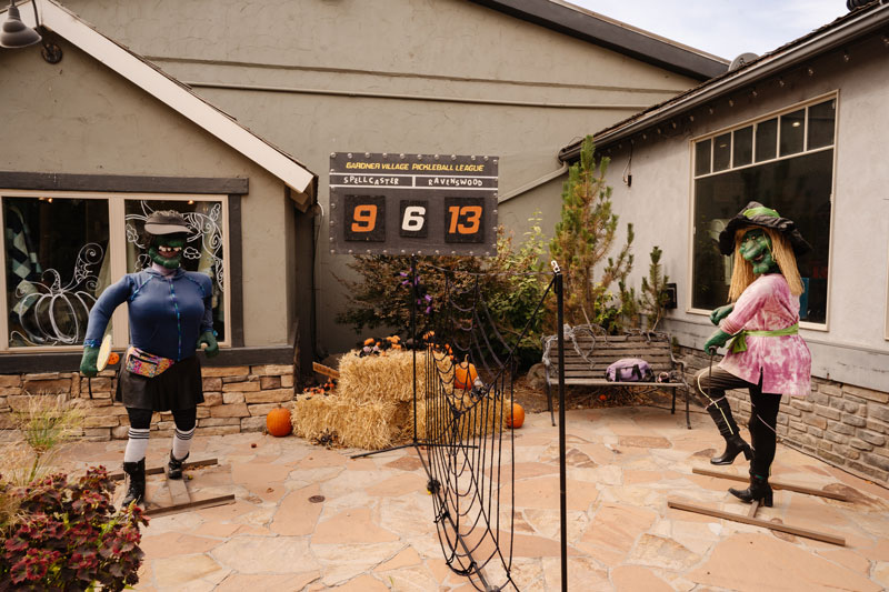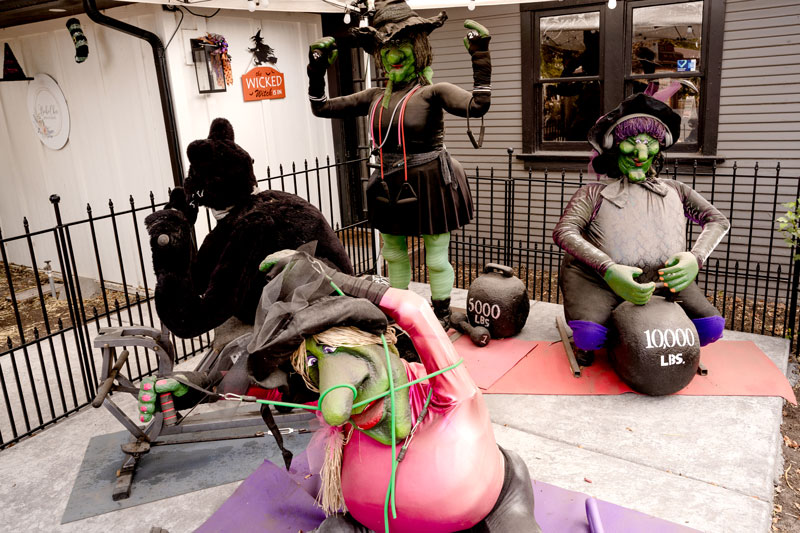 A. That’s always hard. We have some classics that we don’t change. They’re the ones that have been here for 13 or 14 years. Others are ones we rotate more often. Sometimes it depends on the display we want to create and what former display lends itself best to that. The pickleball witches were once baseball players, and the way their bodies were created worked really well in a pickleball setting.