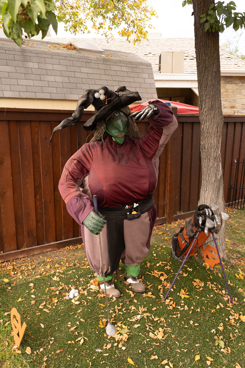 Some of our ideas just come from the things we enjoy. This year, we have a new golf display. I love to golf, and Joe Long, Gardner Village co-owner, is a big golfer, as well as our property manager, Dave Koncar. We were chatting one day and he said, “We should do a golfing witch.”