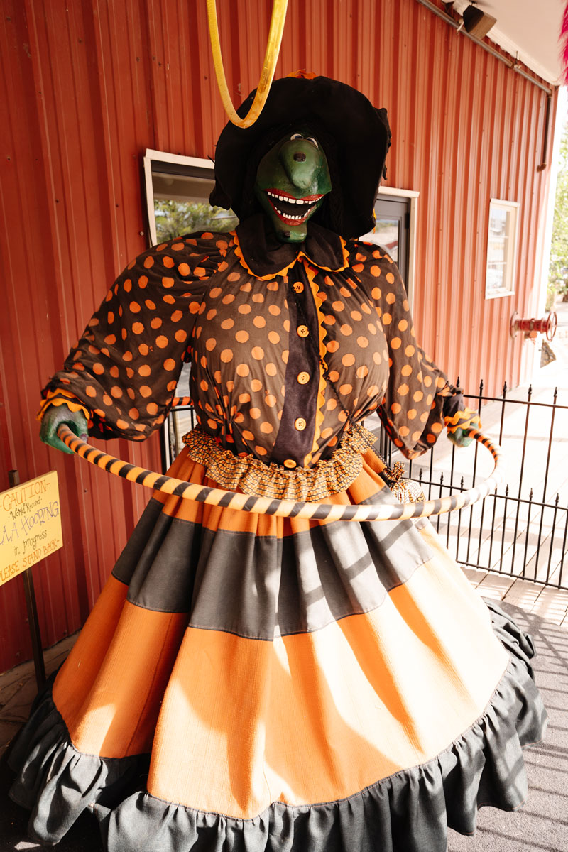 A. We actually start nearly nine months before WitchFest each year. During the winter months, we are doing our witch upkeep – changing out motors, making repairs, and other general maintenance. This is also when we start thinking about new display ideas and what we might want to do. In the late spring/early summer, we start working on this dipslays and the finer details. We pull every witch out, clean them up, and update their clothing. Sometimes, this involves replacing limbs and touching up weather-damaged paint.