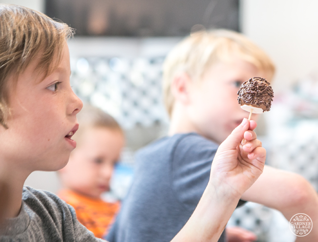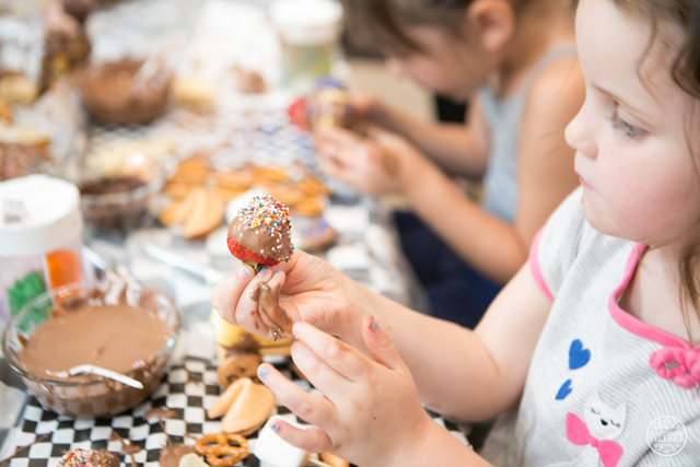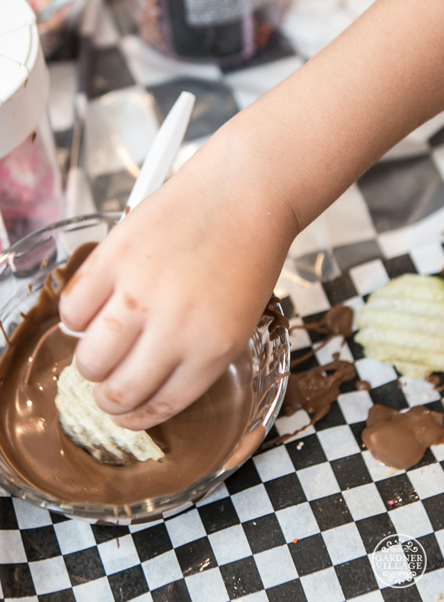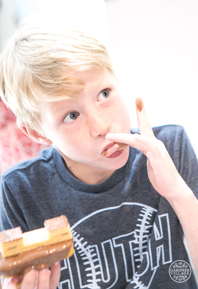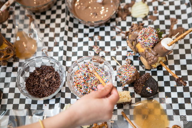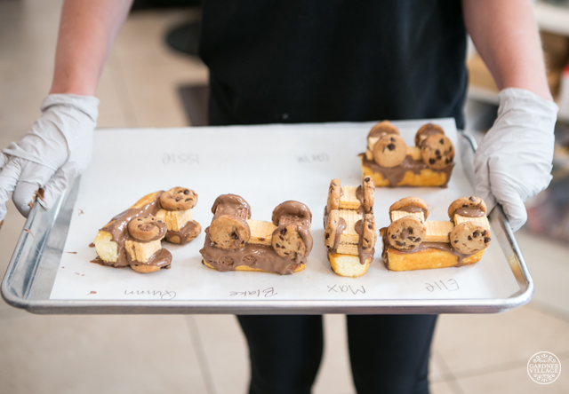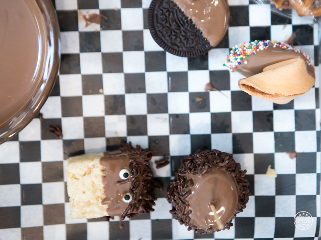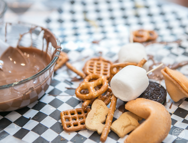 Campers are then equipped with the necessary camping supplies. No magifying glasses or bug spray here. Just plenty of treats for dipping.