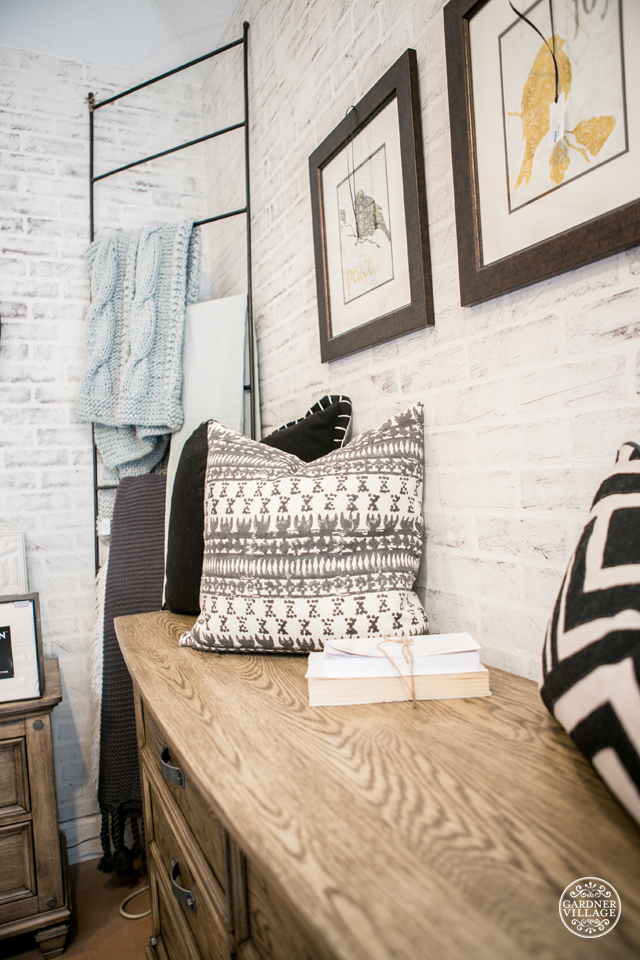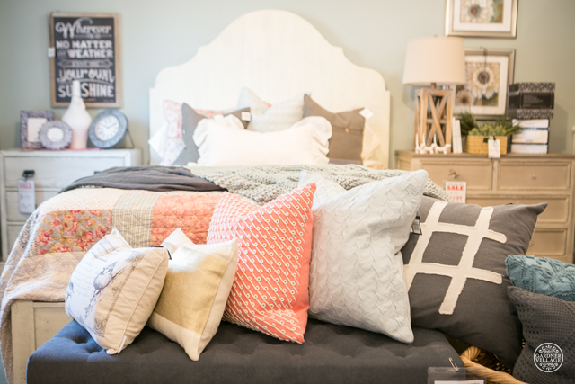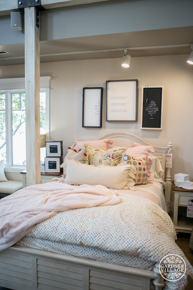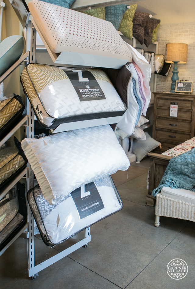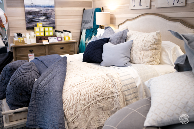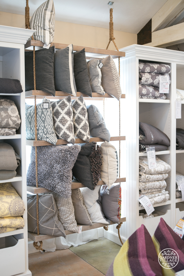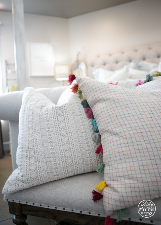 That make-it-perfect-for-you attitude is reflected in each of the wonderful team members who work with Georgia. I snapped this pic of Maddi (on right), who was helping Alisa (left) with a common dilemma—what Alisa called pillow overload. lol “Help me avoid pillow overload,” she said. “My husband is over putting dozens of pillows on and off the bed, but I still want something pretty.” This caught my ear because I can so relate (and I do a mean job of eavesdropping when working on Shop Spotlight posts). ;)
