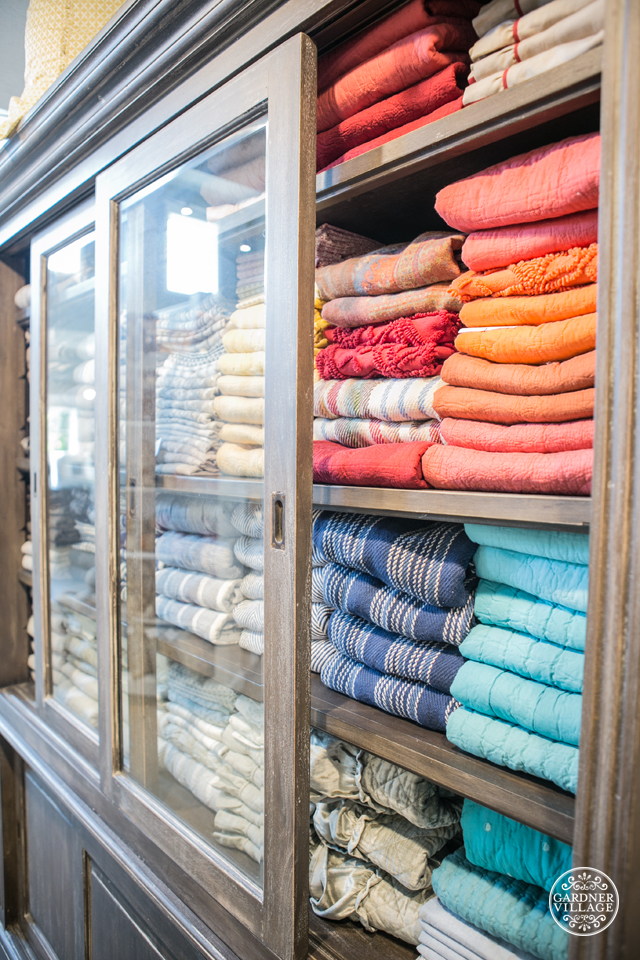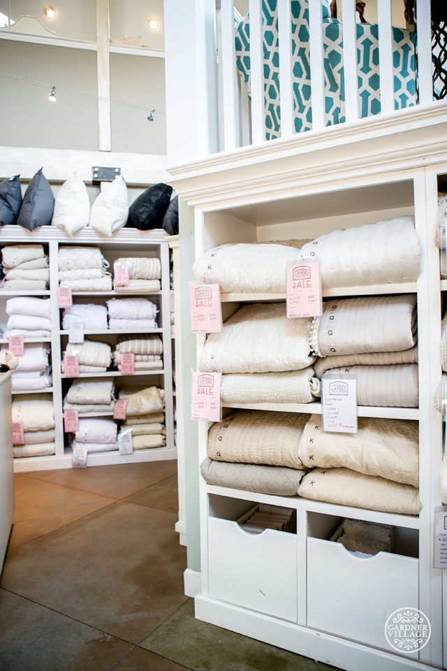 You also won’t find this volume of bedding options elsewhere. Layers was formerly known as The Village Quilt Shop. Don’t let the name change full you. It still specializes in gorgeous specialty quilts. For the most part, they’re organized by color in various groupings throughout the store, making it easy to find something that complements your space.