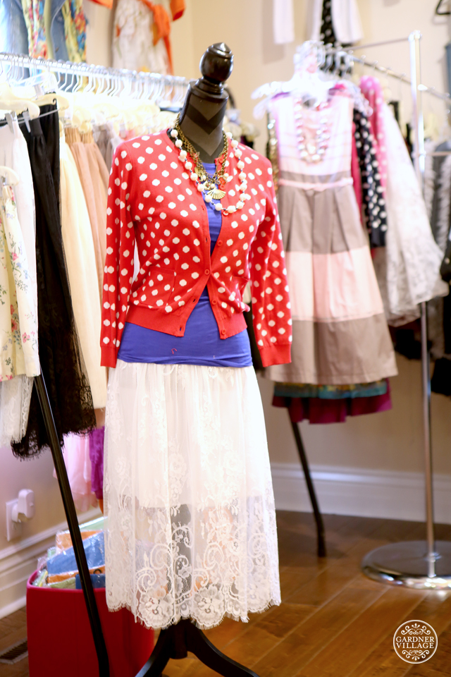 The shopping fun begins before you ever set foot in Spoiled Rotten. They always have pretty outfit ideas on display out front. And you won’t want to miss their $15 clearance rack, which is updated all the time and a permanent fixture out front. Nice!