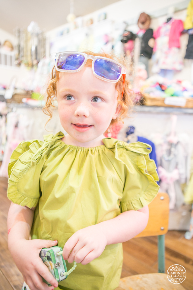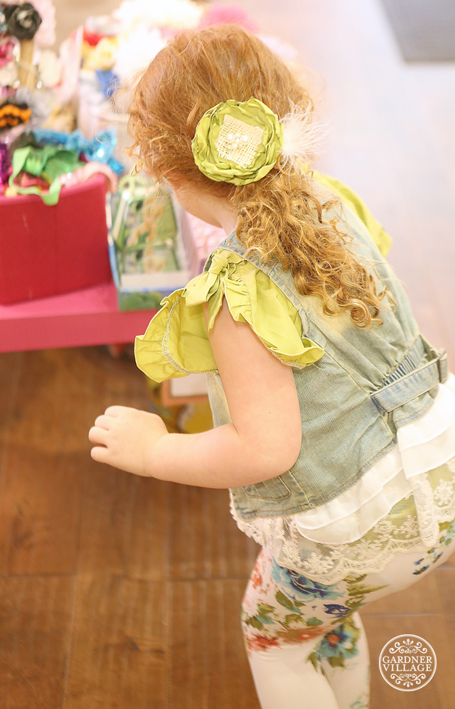 This is Scout. She just turned four, and I was lucky enough to catch her in the midst of her fashion show with her adoring grandparents. They came in and said she loves green. From there, they found the prettiest bunch of clothes for her to wear. And she was having a ball trying them all on for us. Such a cutie!