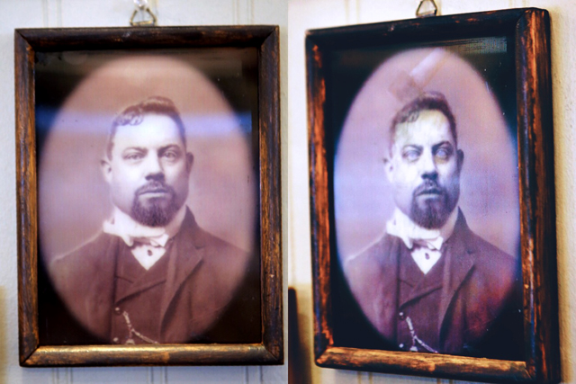 If you’re a fan of the Haunted Mansion at Disney, you’ll flip for these portraits. My photos don’t do them justice, but they go from normal looking vintage photos to freaky fright sites, depending on your angle. VERY cool! And creepy!