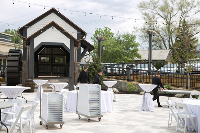Now that you’ve taken the tour, let’s talk options. Mill Plaza can be set one of three ways, giving you the ultimate in customization as you plan your gathering. From drinks to dining to dancing, any celebration will be made magical.