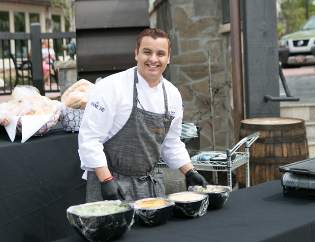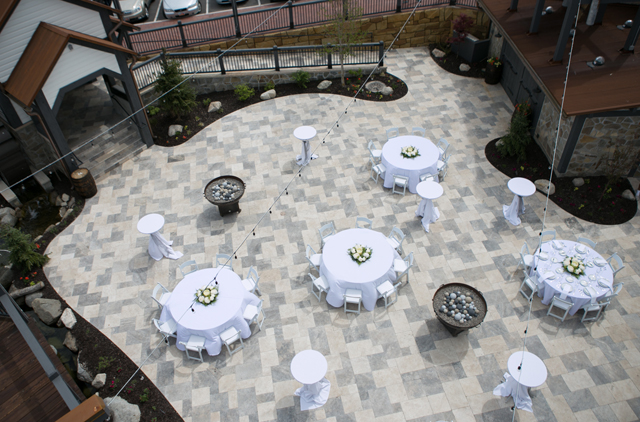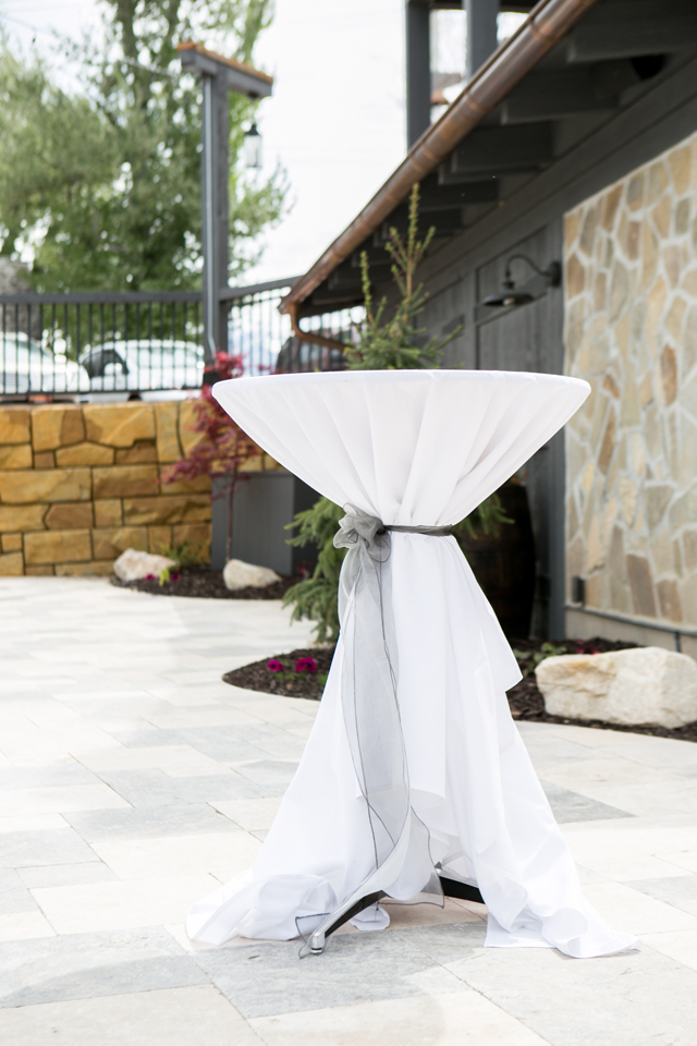 Standing room, only. Not really, of course. Mill Plaza is a wide open space with plenty of room for plenty of guests. But the tall tables are rolled out and dressed up for the Social Hour option.