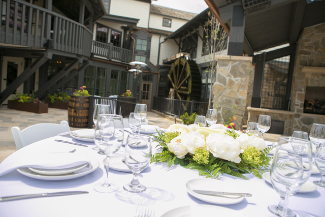Get the full Mill Plaza experience with it set in reception fashion. Tables will be dressed for dining, but you’ll also have plenty of space for dancing the night away under the pretty patio lights strung overhead.