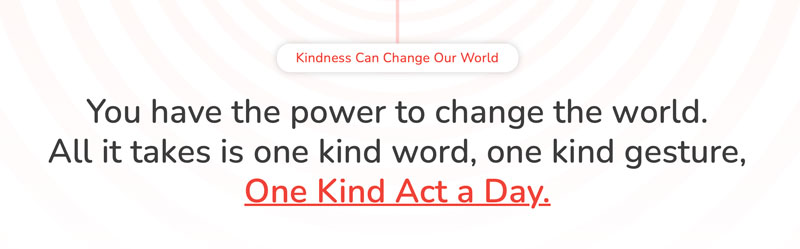 Kindness is expressed in many forms, big and small. It can be a kind act shown to another. It can be planned or even worked into how you go about life. It can be random and on a whim. And, we mustn’t forget, it can be a kindness shown to yourself. Here are a few messages from One Kind Act a Day’s website.
