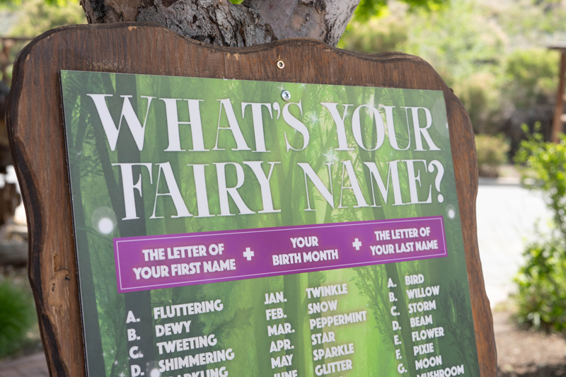 Ever wonder what your friends might call you if you were a Woodland Fairy resident? Now’s your chance to find out. Our fairy friends have kindly created signs to help you identify your true calling. Find them near Center Court (by the water tower) and near the east bridge (close to Chocolate Covered Wagon).