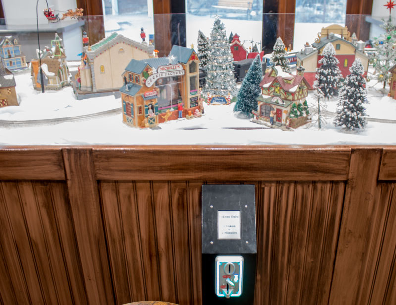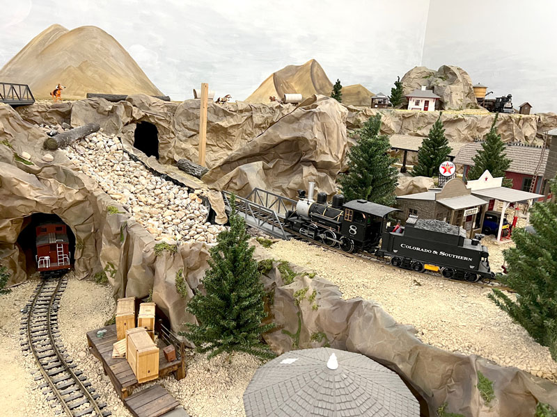 If you want to take your train ride up a size, the G (or Garden) scale is the biggest model railroad choice. You’ll find a token-operated display of this style at The Train Shoppe as well.
