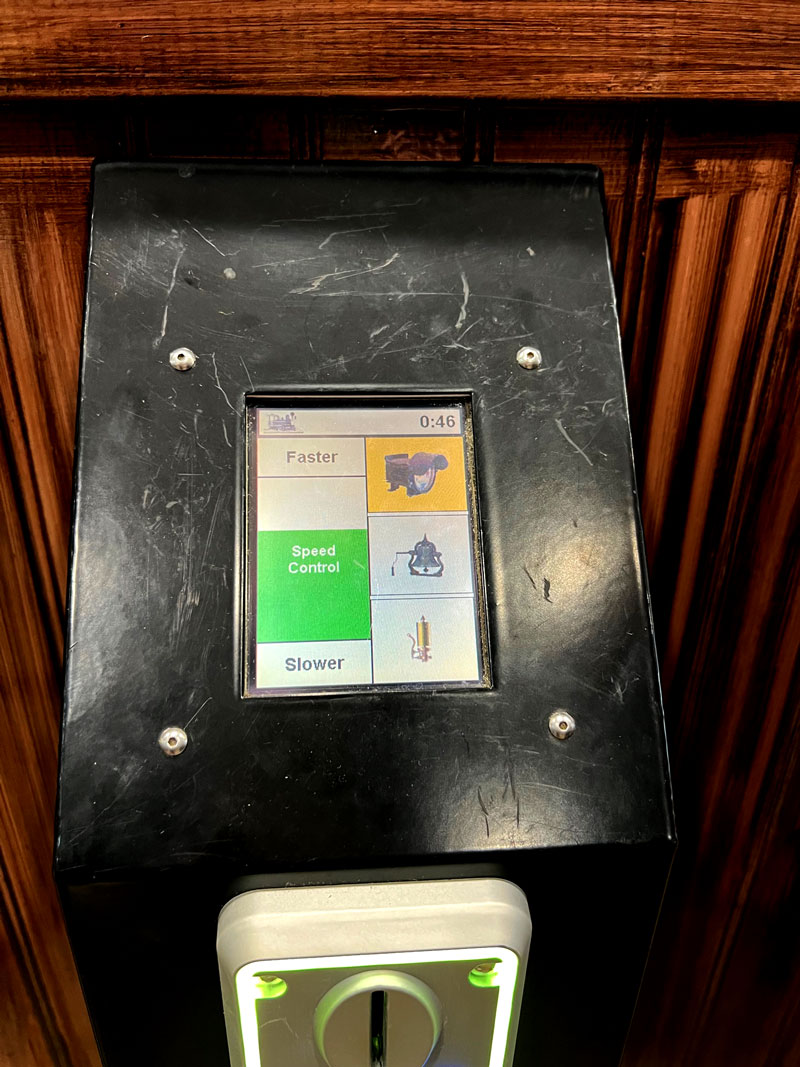 You can even conduct the train at the control panel, which has speed options and even a horn to HOOONK!