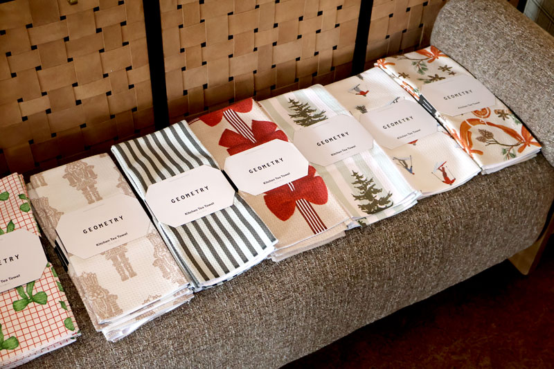 You can’t go wrong with an always-popular Geometry dish towel, and Down to Earth has numerous styles, both for the holidays and the year ahead.